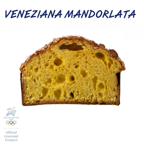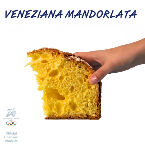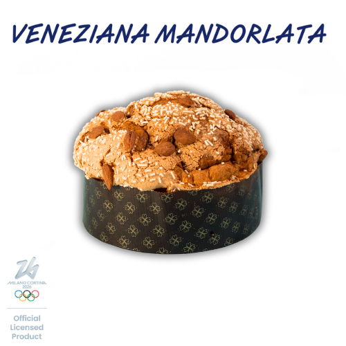 Il Panettone Veneziana Mandorlata Lavorato a Mano, Official Licensed Product, delle Olimpiadi Milano Cortina 2026 è una creazione del Maestro Silvano Marchesi, già vincitore del premio Miglior Panettone della Lombardia – Panettone Day nel 2015 e nel 2022.